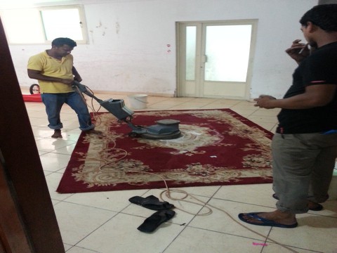وتقوم فرق العمل بفرك السجاد يدوياً باستخدام الفرش الخشنة لتفتيت الأوساخ التي تراكمت في أنسجة السجاد.